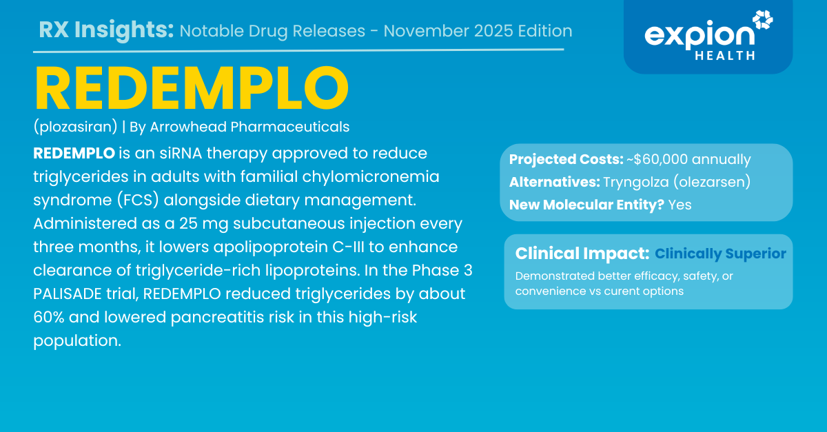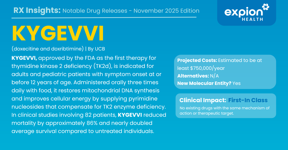 This month’s edition provides a focused review of newly approved and recently launched therapies. Expion Health monitors these developments closely to assess clinical relevance, therapeutic positioning, and potential implications for payers, providers, and patients.