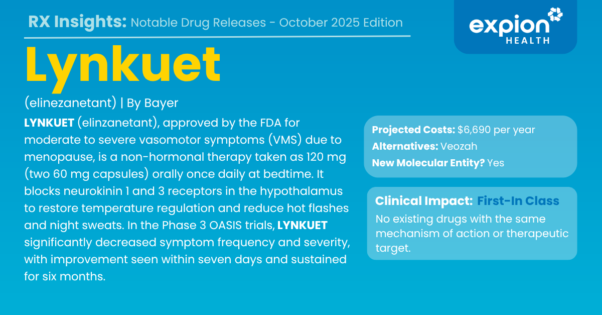 This month’s edition provides a focused review of newly approved and recently launched therapies. Expion Health monitors these developments closely to assess clinical relevance, therapeutic positioning, and potential implications for payers, providers, and patients.